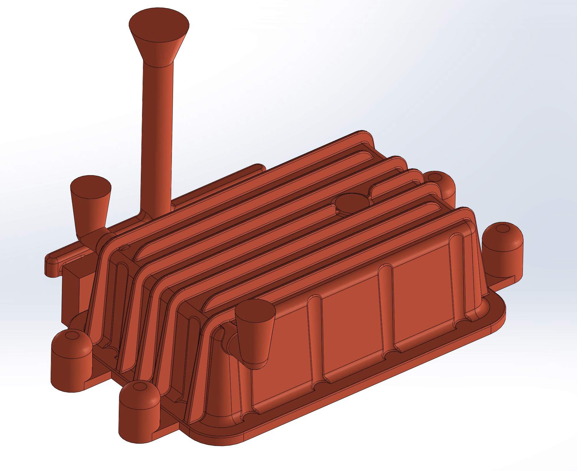 В этом проекте у заказчика было особое требование. Во избежание временных и материальных затрат на дополнительную механическую обработку, он попросил нас изготовить в блоке двигателя с помощью литья масляные каналы охлаждения.